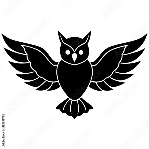 Obraz premium Stylized black silhouette of an owl with wings spread wide