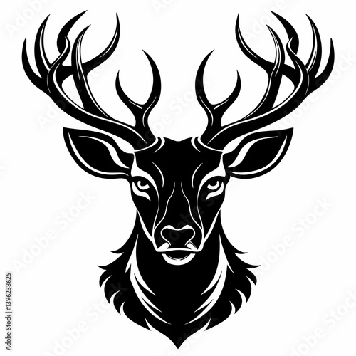 Naklejka premium "Stylized Black Silhouette of Deer Head with Antlers"