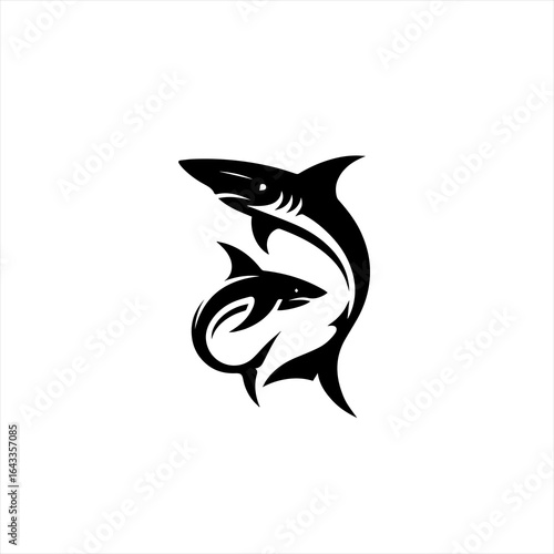 Obraz premium Stylized black silhouette of two sharks swimming together