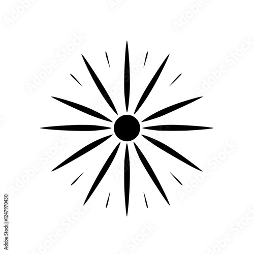 Obraz premium Stylized Black Sunburst radiating from a central, circular form, set against...