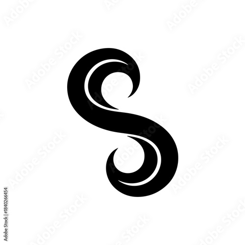Naklejka premium Stylized black swirling abstract shape resembling a dynamic wave or a fluid...