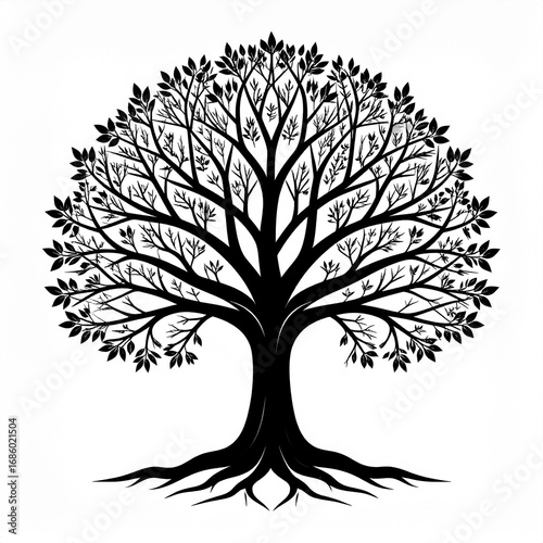 Fototapeta premium Stylized black tree silhouette with visible roots and branches
