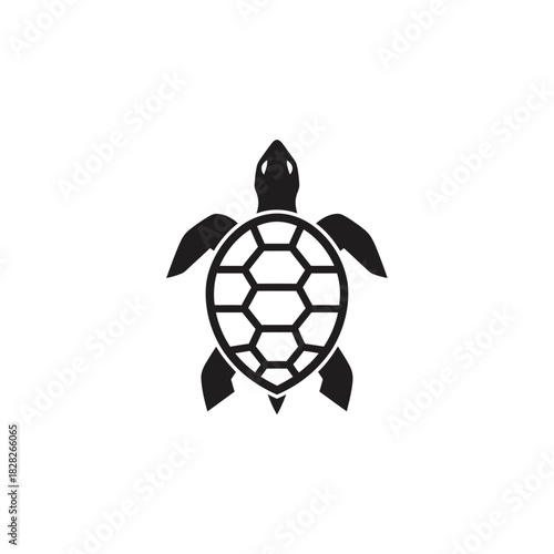 Obraz premium Stylized Black Turtle Icon with Hexagonal Shell Pattern.