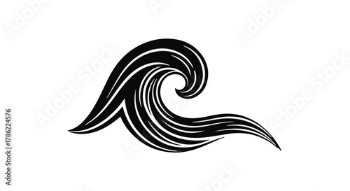 Fototapeta premium Stylized black wave illustration with flowing lines on white background