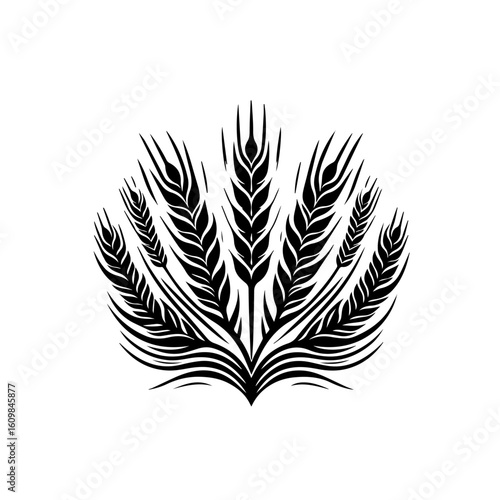 © fariya, Obraz premium Stylized Black Wheat Stalks Emblem.