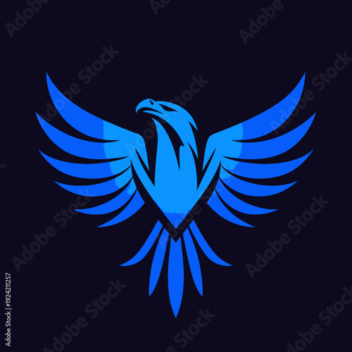 © azi, Fototapeta premium Stylized blue eagle with outstretched wings against a dark background