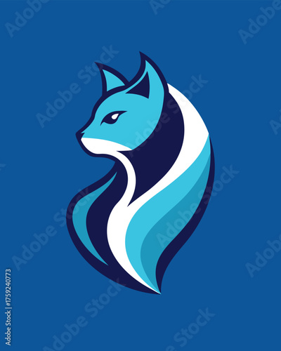 Obraz premium Stylized blue fox head logo, showcasing modern design elements on a blue...
