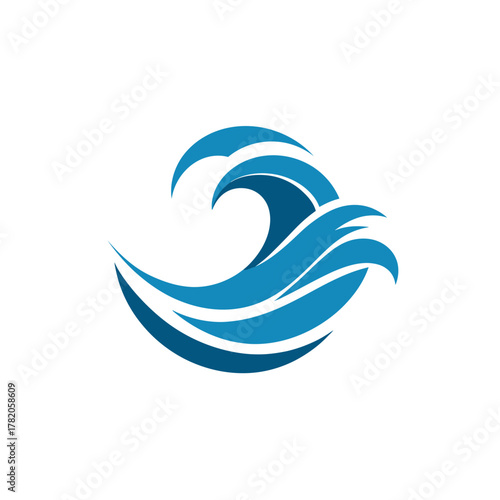 Obraz premium Stylized blue ocean wave icon, abstract water ripple symbol graphic element...