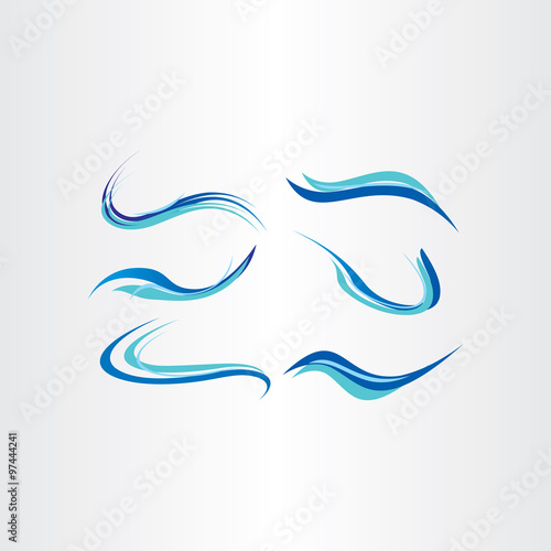 © Blasko Rizov, Obraz premium stylized blue water wave vector brush set