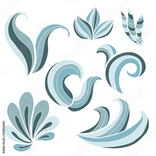 © Elena, Naklejka premium Stylized blue waves set