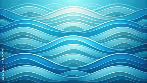 Obraz premium Stylized blue waves with smooth curves create a calming, abstract oceanic...
