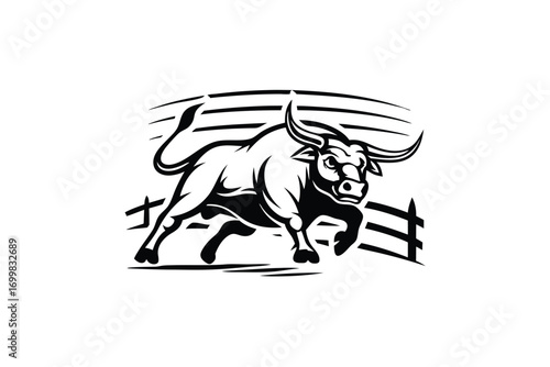 Fototapeta premium Stylized Bull with Horns Ready to Attack on White Background