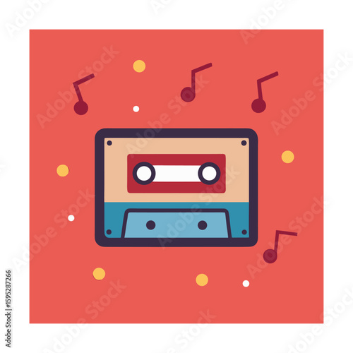 © Sk shofiqul islam, Obraz premium Stylized Cassette Tape with Floating Music Notes