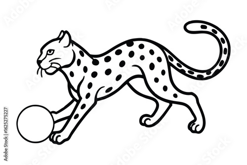 Fototapeta premium Stylized cheetah with spots playing with a ball