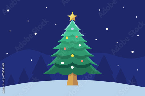 Obraz premium Stylized christmas tree with star and snow in winter landscape at night