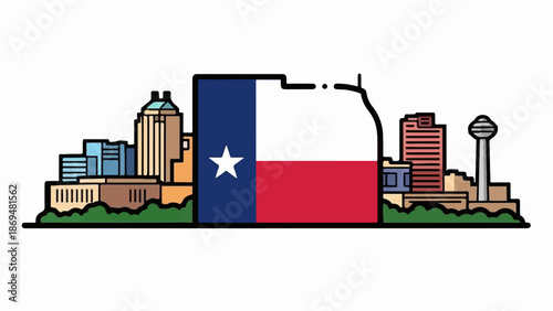 Obraz premium Stylized cityscape silhouette incorporating the Texas state flag