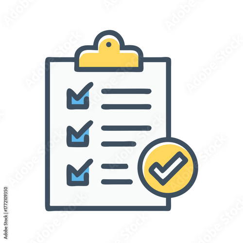 © MonoPixel, Obraz premium Stylized clipboard with completed checklists representing task management icon
