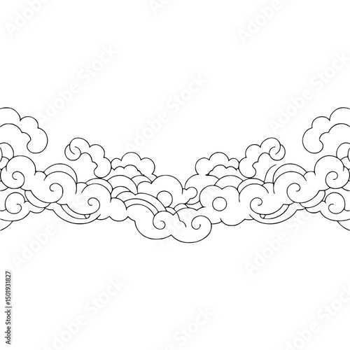 © MatandSterre, Obraz premium Stylized Clouds Border: Black & White Vector Illustration