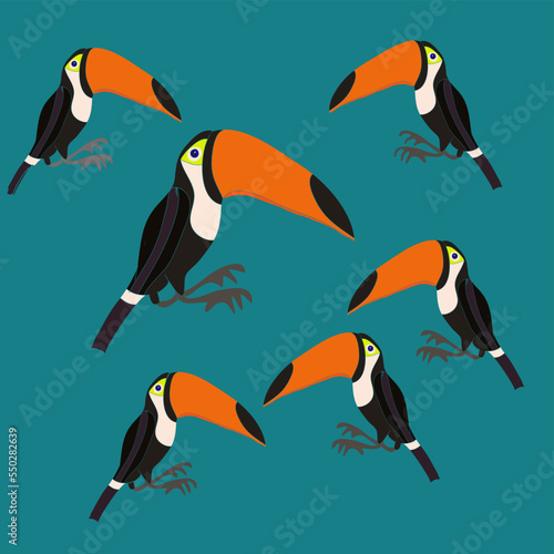 Naklejka premium Stylized colored toucans. Hand drawn.