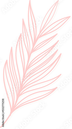 Naklejka premium Stylized coral pink palm leaf is being shown in hand-drawn flat design on transparent background