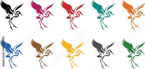 Obraz premium Stylized crane birds in multiple colors wildlife, Multicolor crane illustrations