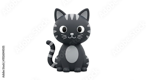 © Kamira, Obraz premium Stylized 3D Black Cat with Grey Stripes