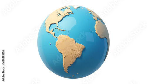 Fototapeta premium Stylized 3D Earth Globe with Detailed Continents and Blue Oceans on Isolated...