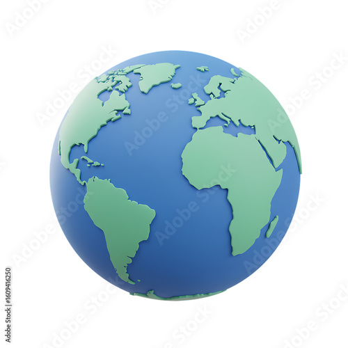 Fototapeta premium Stylized 3D Earth Globe with Green Continents and Blue Oceans.