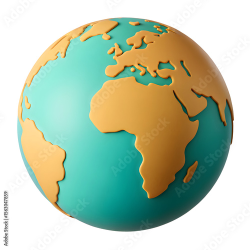 © RIFAT AHOMED MIYAZE, Naklejka premium Stylized 3d globe with orange continents on a turquoise planet isolated on transparent background