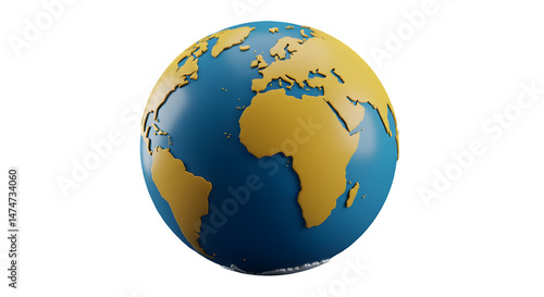 Naklejka premium Stylized 3D model of Earth, continents in yellow, oceans in blue. Isolated on white or transparent background