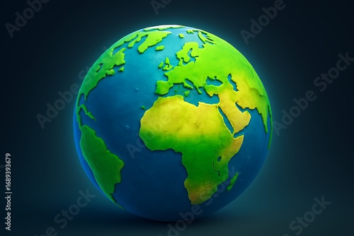 Fototapeta premium Stylized 3d render of planet earth vividly depicting continents and oceans
