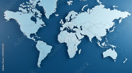Fototapeta premium Stylized 3d world map design on serene blue gradient background for a modern...