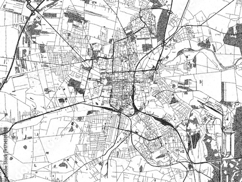 © W&S Stock, Naklejka premium Stylized decorative city map of Czestochowa, Poland, hand-drawn in black and white.