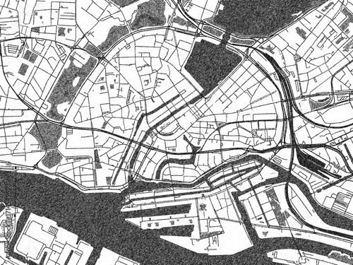 © W&S Stock, Naklejka premium Stylized decorative city map of Hamburg Zentrum, Germany, hand-drawn in black and white.