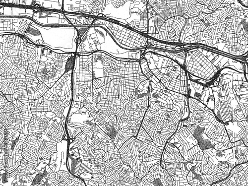© W&S Stock, Fototapeta premium Stylized decorative city map of Osasco, Brazil, hand-drawn in black and white.