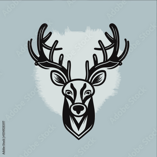 Fototapeta premium Stylized Deer Head Illustration In Black And White Against A Soft Gradient...