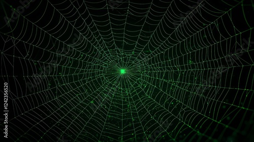 © Jakkarin, Fototapeta premium Stylized Digital Spiderweb Design with Vibrant Green Elements