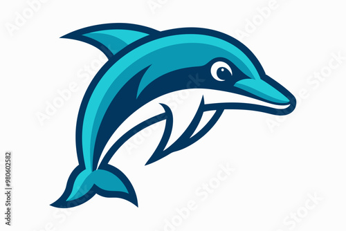 © Irma, Fototapeta premium Stylized dolphin logo with cheerful expression and blue colors on white background