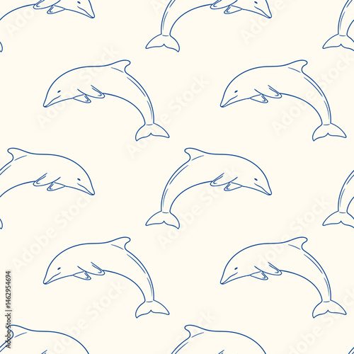 Naklejka premium Stylized dolphins swimming gracefully in a seamless pattern design