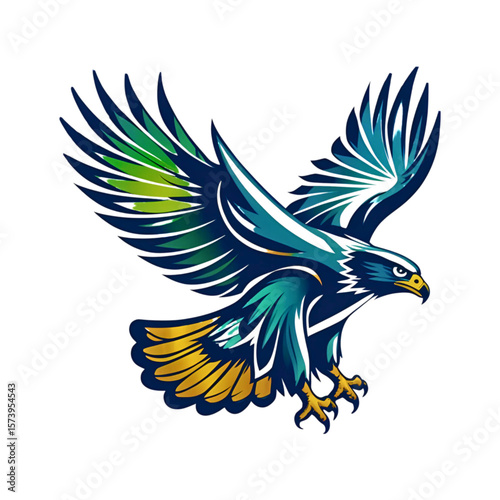 © Tanvir Rahman , Obraz premium Stylized eagle with blue green and gold feathers in flight