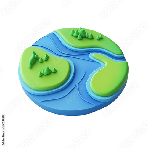 © muhammad.abdullah, Obraz premium Stylized Earth 3D model Green land Blue water
