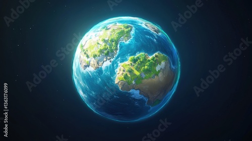 © Mutimul, Obraz premium Stylized Earth Planet Depiction Showing Landmasses and Oceans