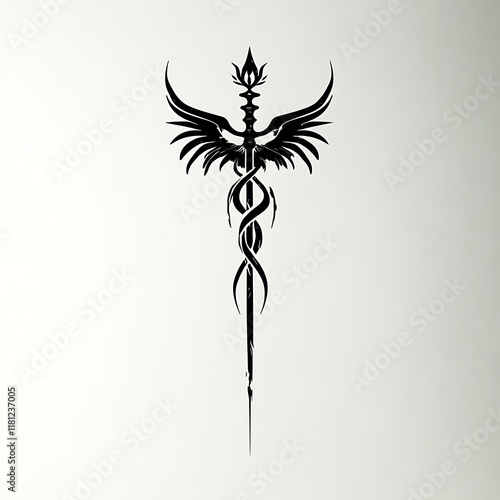 © Indri, Fototapeta premium Stylized emblem featuring a phoenix and serpent.