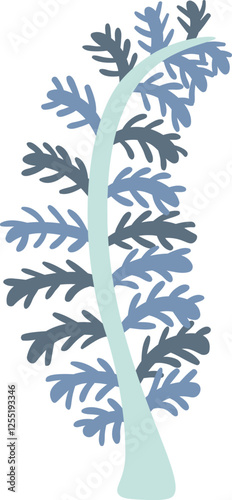 Naklejka premium Stylized fern frond in shades of blue and teal curves elegantly against a...