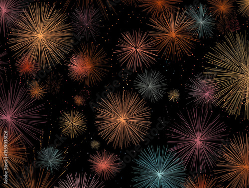 © NelviaWistika, Naklejka premium Stylized firework patterns on black background (vector)