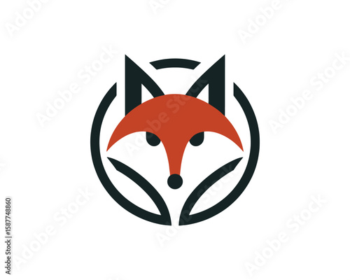 © Mamun360, Obraz premium Stylized fox face in circular geometric emblem vector design