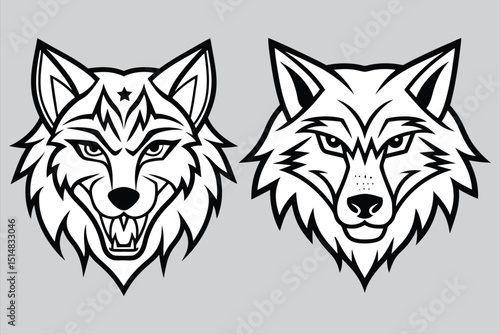 © MDRASELMIA, Obraz premium Stylized fox face outline, sharp forest creature graphic.
