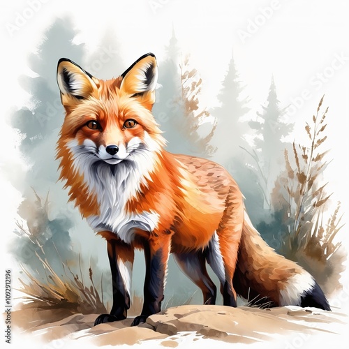 © Thachakrit, Obraz premium Stylized fox head in vector format, detailed yet simple, perfect for creative projects on a transparent backdrop.