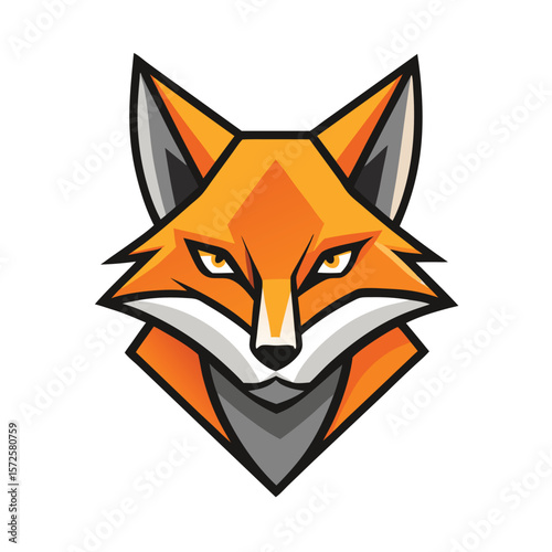 Obraz premium Stylized fox head with orange fur and captivating yellow eyes appears isolated on white