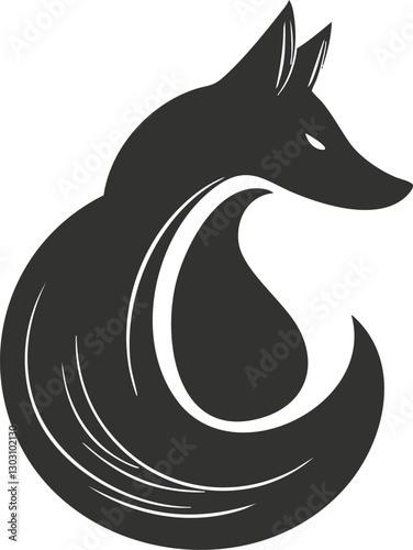Naklejka premium Stylized fox silhouette logo design in black and white.